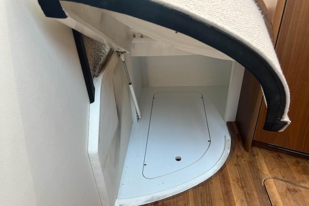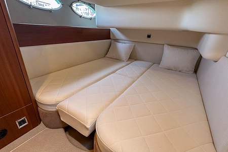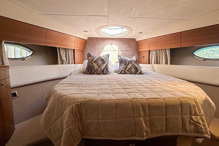 Ombord möts du av en välplanerad och luftig layout med två rymliga kabiner, två badrum samt en bäddbar salong – perfekt för både familj och gäster. Här finns gott om utrymme för bekväma och längre vistelser till sjöss.
