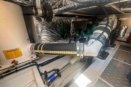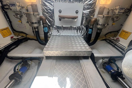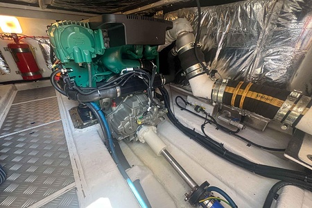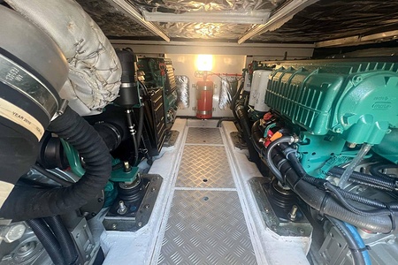 Båten är mycket välutrustad och drivs av två Volvo Penta D6-435 med låga gångtimmar, vilket ger en trygg, ekonomisk och kraftfull gång. Utrustningsnivån är hög och inkluderar bland annat full teak, ankarspel i både för och akter, bog- och akterpropeller samt en praktisk lyft/vagga för RIB eller vattenskoter.