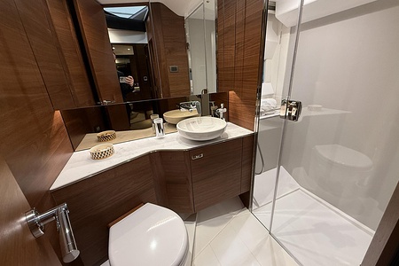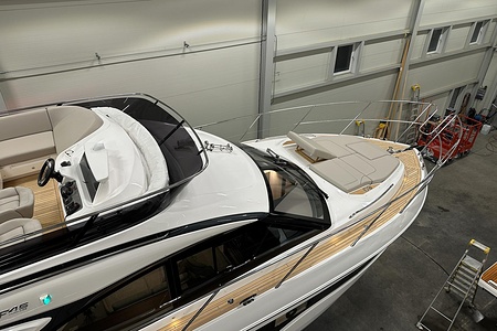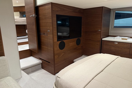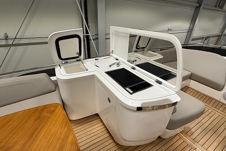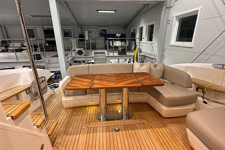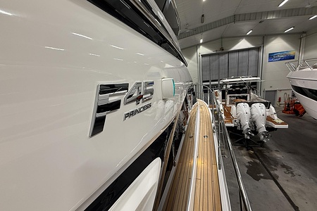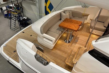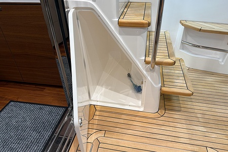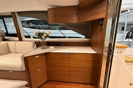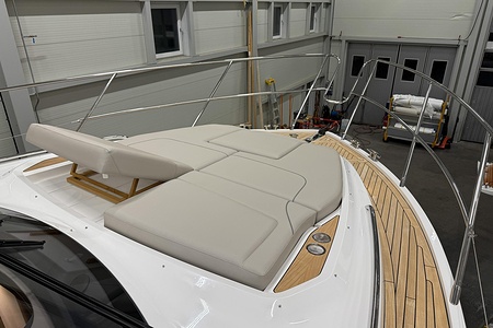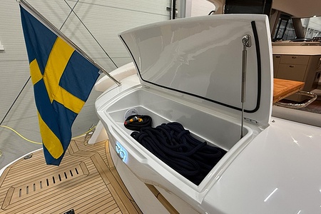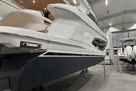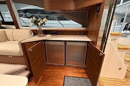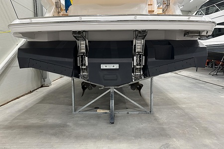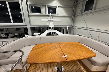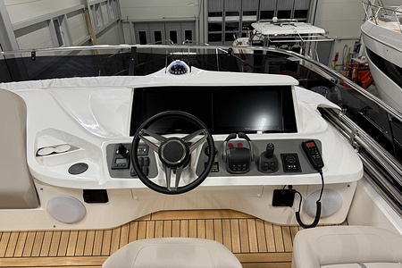 2024 year model • Twin Volvo IPS 650 (2 x 480hp each) diesel engines • Volvo Joystick control • Assisted Docking • Dynamic Positioning System / DPS • Automatic trim system • Variable bowthruster with hold • Hydraulic platform • Walnut interior wood, satin finish • Saloon berth conversion • Heated bathroom floors • Washed/dryer • Dishwasher • Full teak • ONAN generator • BBQ in wetbar • 4x Garmin Glass Cockpit 16 inch chartplotters integrated with Volvo autopilot • Radar • Demist • Heating