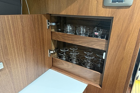 Walnut interior wood satin finish (galley floor is in V groove planked Walnut as standard)