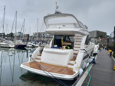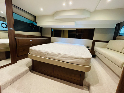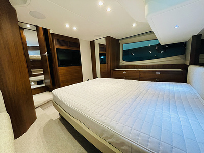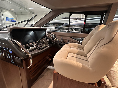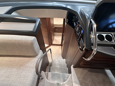 The Princess F50 is fitted with an autopilot (with rate gyro) and Volvo/Garmin 16” multifunction displays at lower and upper helm incorporating GPS/chartplotter, echo sounder, log trip as well as engine instrumentation and autopilot controls. Fuel gauge and helm position indicator are also displayed. Please note:
