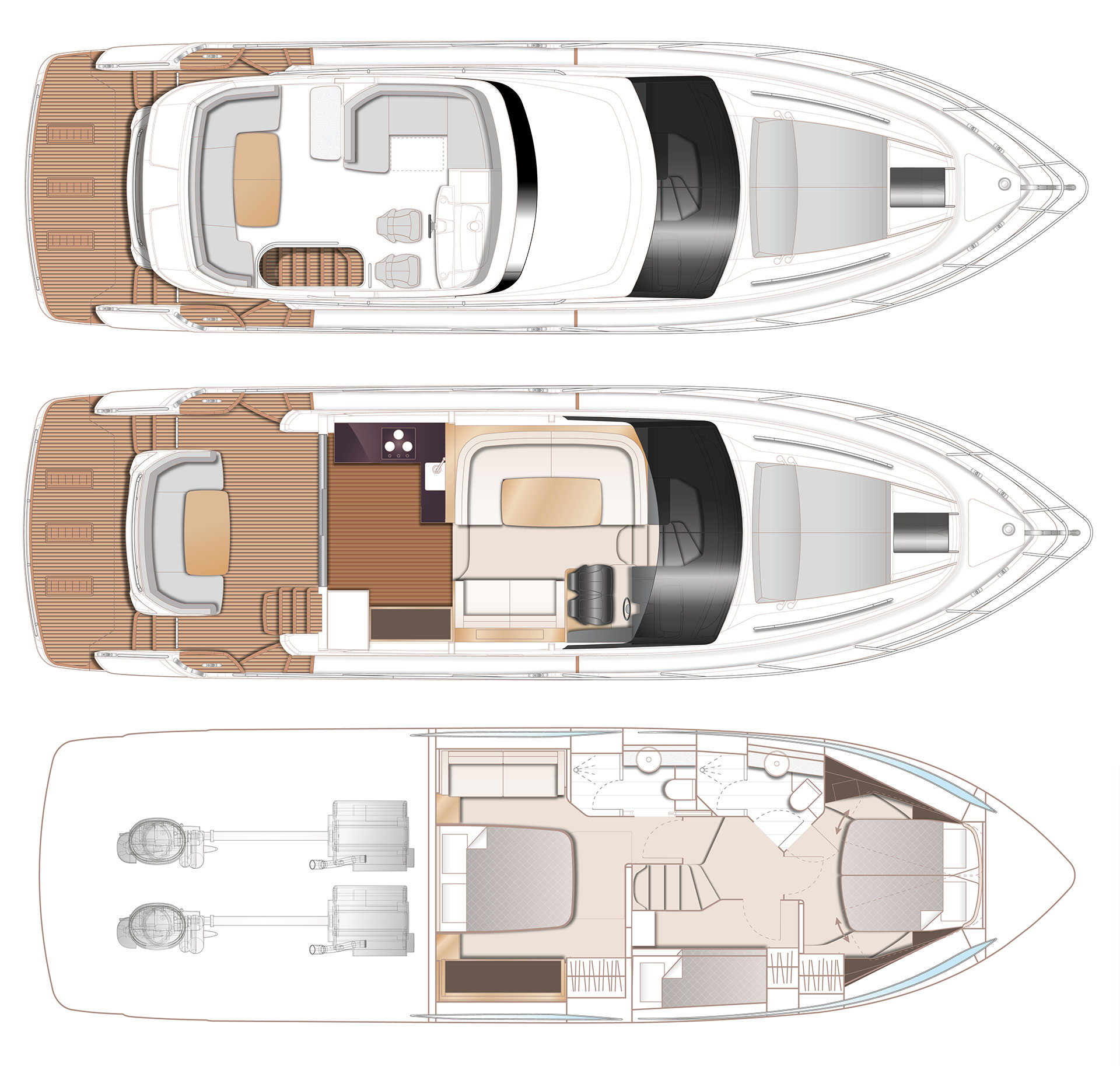 Twin Volvo penta IPS 800 (2 x 600 mhp) are fitted as standard and include dual station joystick controls and ACP (anti corrosion protection) system