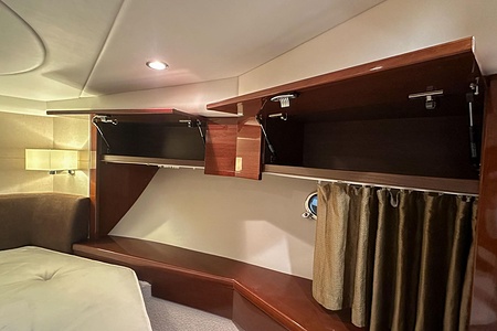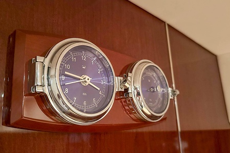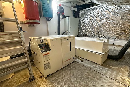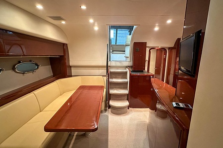 I aktern finns ett rymligt garage för tender, och den väl tilltagna sittbrunnen är utrustad med wetbar innehållande grill, kyl samt både varmt och kallt vatten – perfekt för sociala stunder till sjöss. Båten har genomgått flera fina uppdateringar och är utrustad med helt nylagd teak på badbryggan samt stegen upp mot skarndäcken, vilket ytterligare förstärker det exklusiva helhetsintrycket.