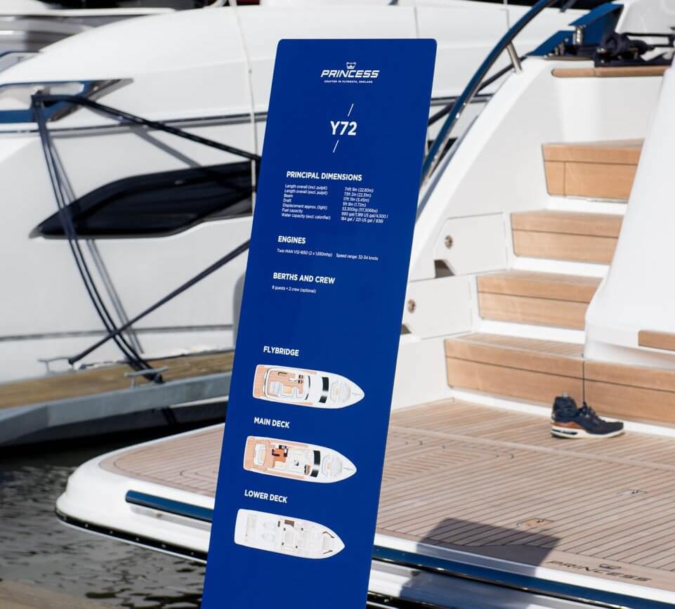Princess Yachts West Sweden/Norway/Denmark kommer til å ha en fantastisk line-up med åtte båter, deriblant Skandinavisk premiere på helt nye Y72. Princess Y72 har også nylig blitt tildelt utmerkelsen Motor Boat of the Year i kategorien Flybridge over 60 ft. Søsterskipet F45, som ble vinneren i kategorien Flybridge opp til 60 ft, kommer også til å vises på messen.